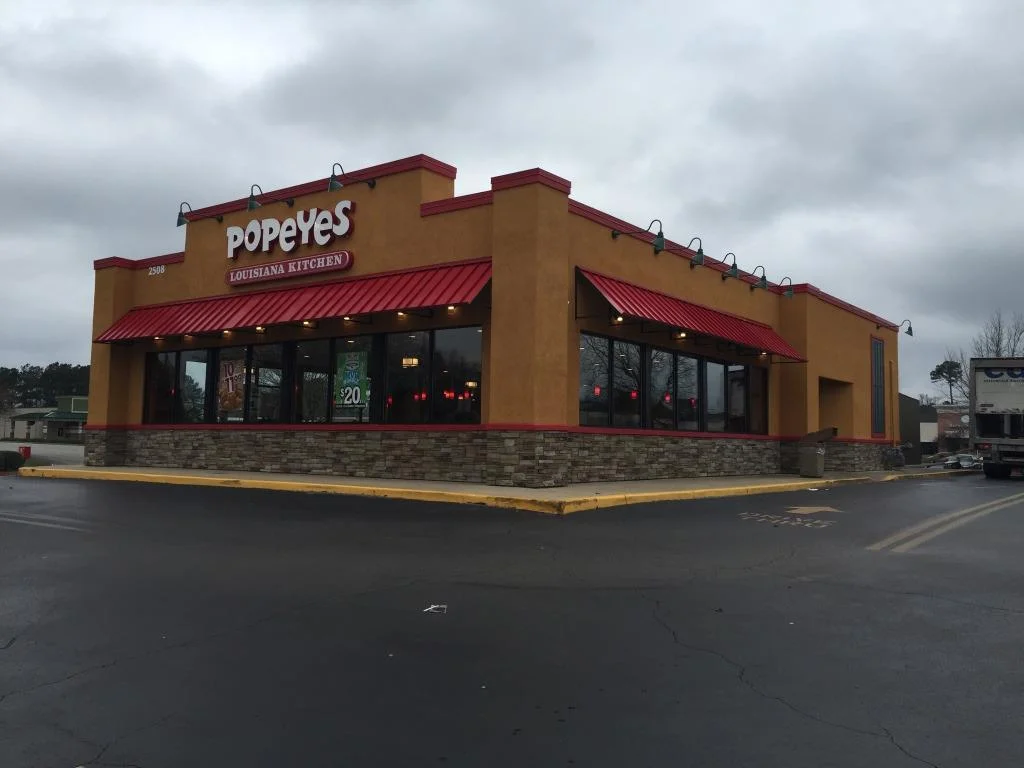 an example of a conversion of a small car wash end cap store to a popeyes restaurant.