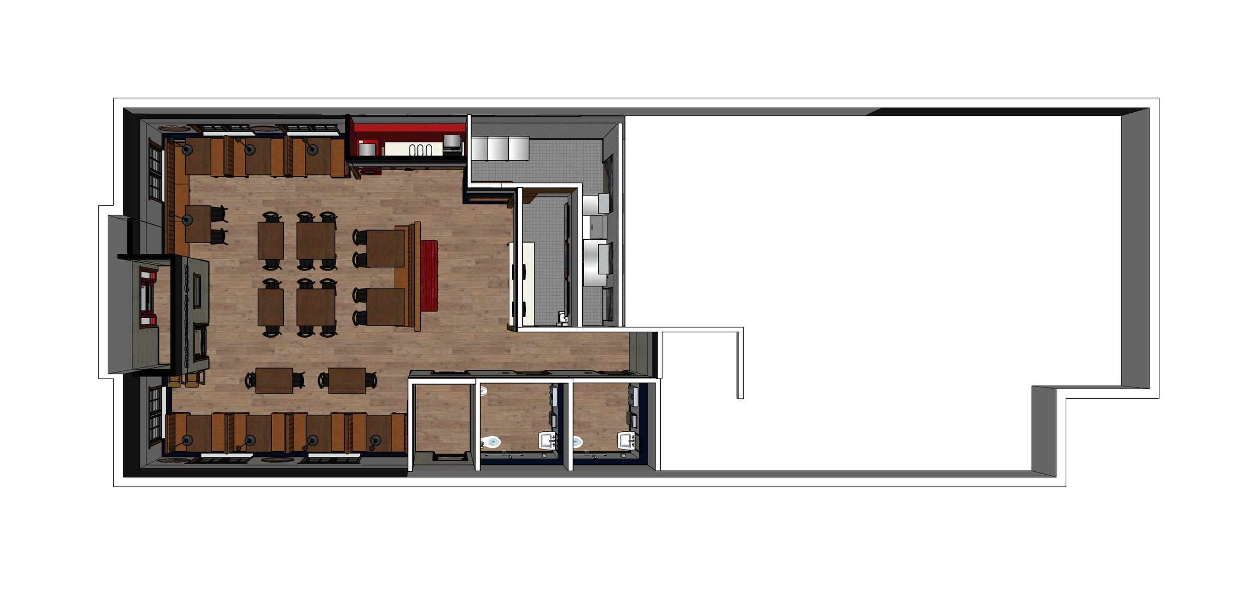 participated with design team on exploration of seating zones, materials and their applications throughout dining room. Also explored standard and custom millwork and equipment for brand identity and wayfinding throughout dining room and at order area.